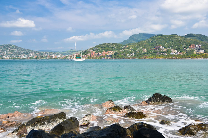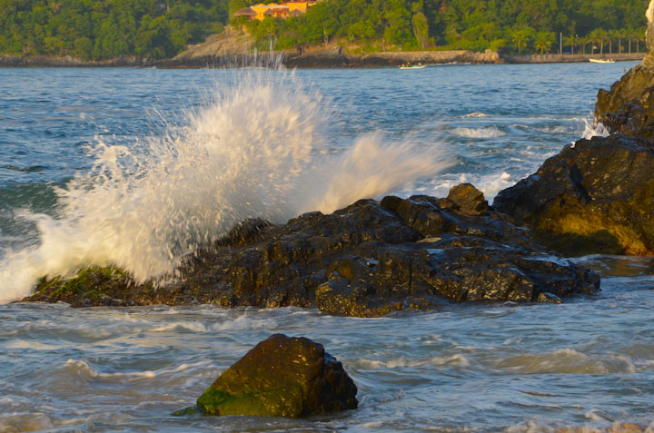 18日我们决定沿着海岸线散步去最漂亮的Las Gatas海滩。它看似很远,在海湾的右翼的出海口处,一打听才知道它和我们所在的La Ropa海滩是相通的,中间有一段礁石山路把两个海滩连接起来,有些难度并不危险,多是当地人通过,少有游客尝试。一听说是通的,我血液里的冒险分子开始活跃了,与其躺在自己的沙滩晒太阳,还不如走到那个漂亮的沙滩去彻底享受一下Princesses的感觉。